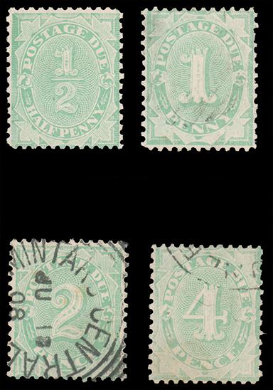 AUSTRALIA, 1907, ½p-4p EMERALD POSTAGE DUE WMK DOUBLE LINED A, J29-J32, ½p mint, others used, fine-very fine, cat. $457.50 (Image)