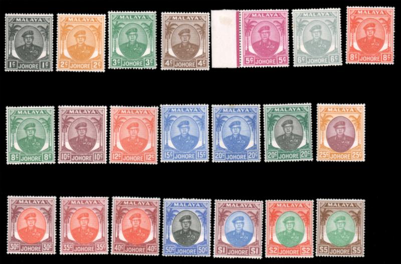 MALAYA - JOHORE, 1949-55 SULTAN IBRAHIM SET MINT, #130-50, LH or h.r., many NH, fine-very fine, cat. $180.65 (Image)