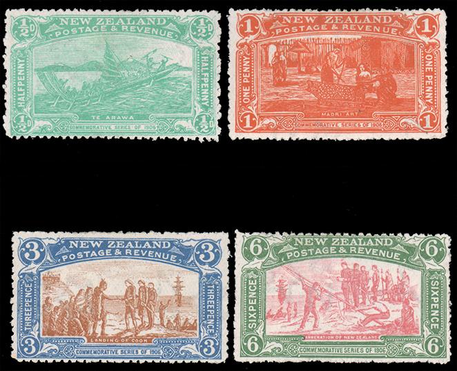 NEW ZEALAND, 1906, CHRISTCHURCH EXHIBITION SET MINT, #122-125, partial crease at top of 1p (CV $27.50), fine-very fine, cat. $461.00 (Image)