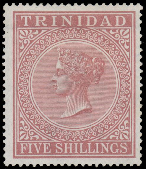 TRINIDAD, 1894, 5sh CLARET MINT, #57, large part o.g., fine-very fine, cat. $67.50 (Image)