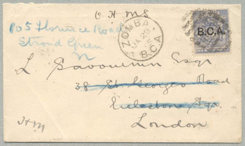 1906, 1/2a-12a, (4), black BRITISH SOMALILAND opt, on registered letter from BERBERA to LONDON, cancelled BERBERA 14 JL 06, aside boxed BERBERA, reverse with ADEN and REGISTERED SEDO 4 AU 06 and red LONDON arrival, 1/2a with ! instead of I, 12a with roughing, interesting and fresh letter, XF! Schätzpreis 300€. (Image)