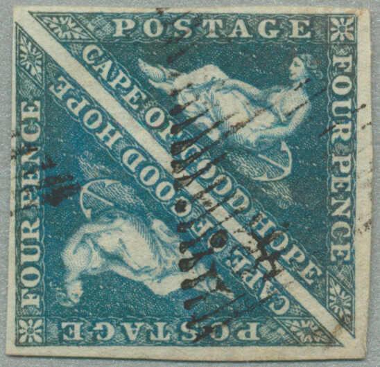 1853, 4 d, blue, triangular imperf, bleute paper, no wmk, no gum, very rare marginal multiple, an exceedingly attractive item for the exquisite taste, ex Hackmey, cert RPSL, XF-SUP! Schätzpreis 5.000€. (Image)
