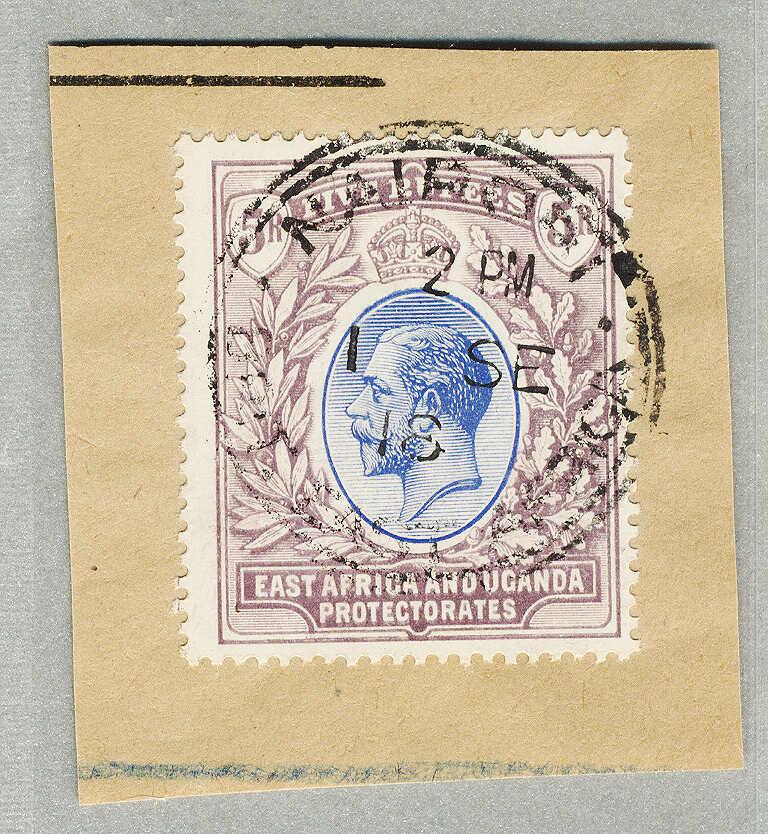 1912-21, 5R, blue and dull purple, on piece, wmk Multi CA, perf 14, used NAIROBI, CV £190, very fresh and desirable, XF! Schätzpreis 230€. (Image)