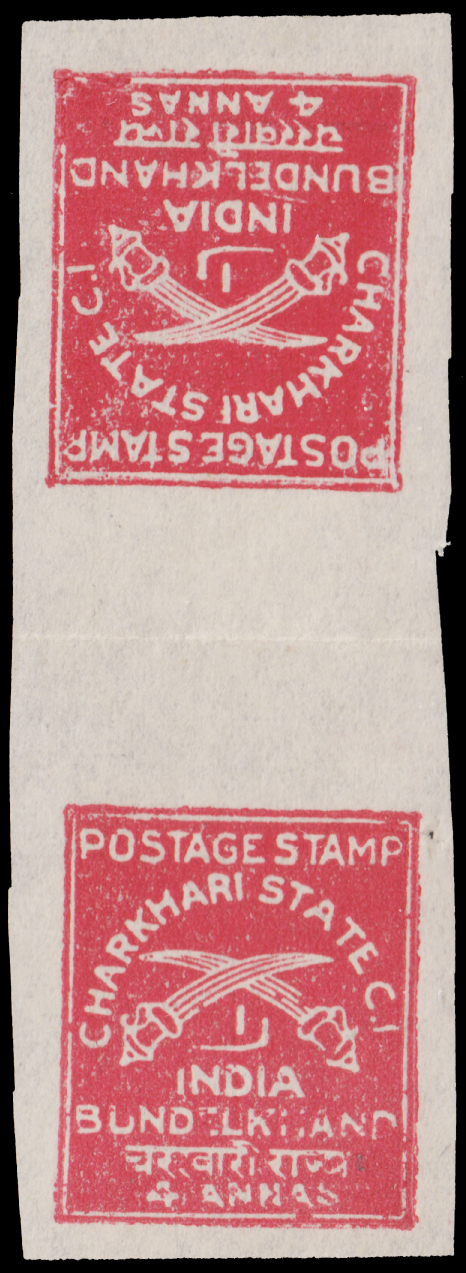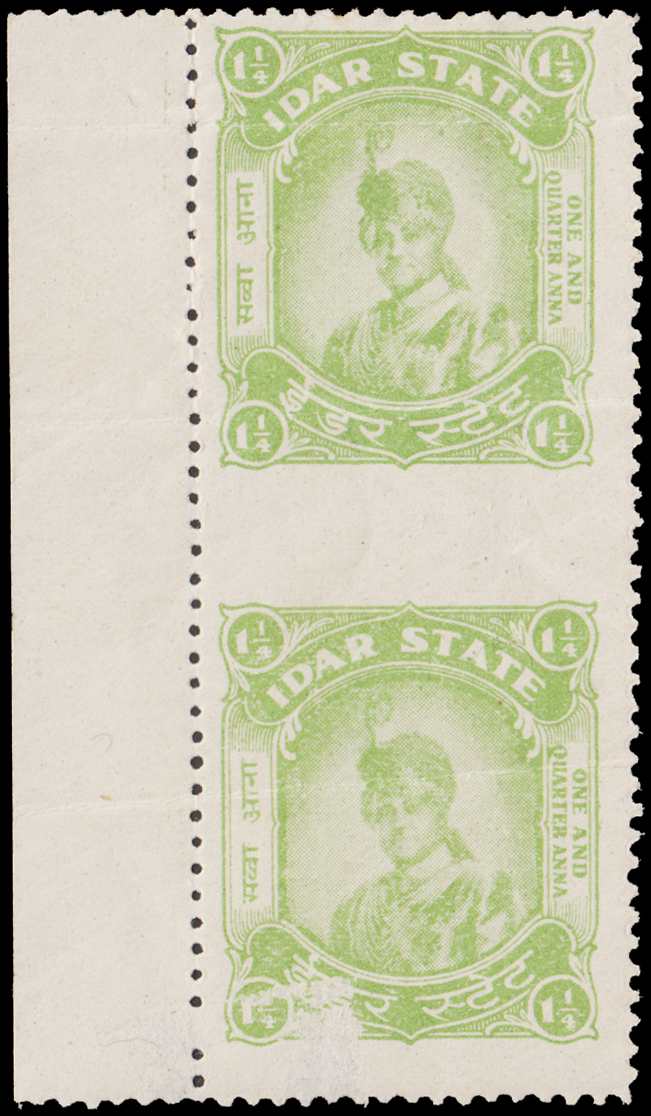 1945 IDAR SG:F5a 11/4a Postal Fiscal stamps in vertical pair imperforated. Creased. $0 (Image)