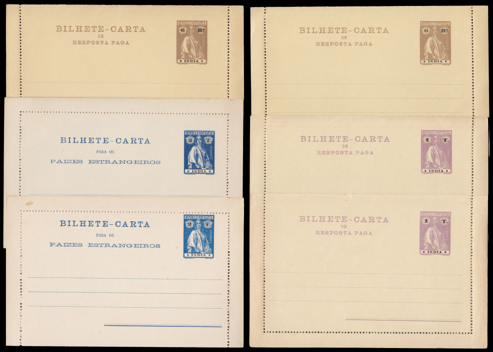 1914 PORTUGUESE INDIA 3 different Letter Cards x 2, two with Paid Reply Cards, unused. $0 (Image)