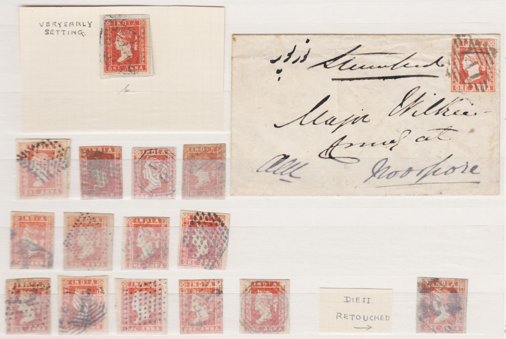 Albums with stamps from 1854 to ca 1912 almost all used, many with duplicates and color shades, the earliest can be of different dies (unchecked), some interesting cancellations. Incl. a native cover franked with One Anna but no guarantee. Good for specialist. $0 (Image)