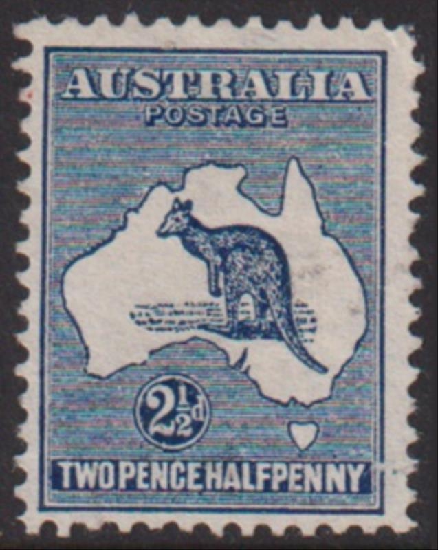 1917 2½d Roo deep blue, narrow crown over A wmk, quite w/c. SG 36. Cat £29. VLH mint.