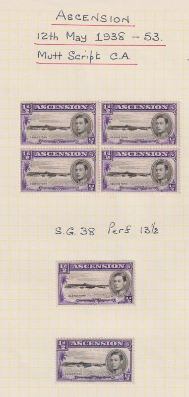 Ascension 1938-55 ½d to 1/- GVI Pictorials, range of perfs & shades - mostly mint, with minor dupn. 52v on 7 pages. SG cat £360+. (Image)