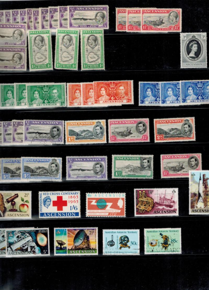 ASCENSION ACCUMULATION Heavily duplicated lot of 52 stamps, mostly mint, all are shown in scan. Scott catalogue value: $81.45 US$ (Image)