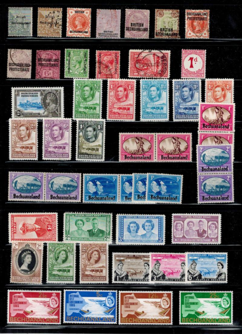 BECHUANALAND ACCUMULATION of 80 stamps, mostly mint, the early 12 stamps are used. All are shown in scans (Image)