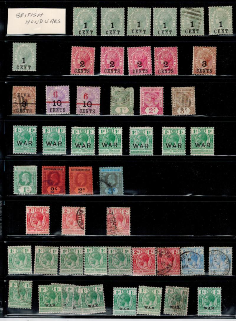 ACCUMULATION OF BRITISH HONDURAS + BELIZE STAMPS 327 stamps in total, heavily duplicated, all are shown in scans (Image)