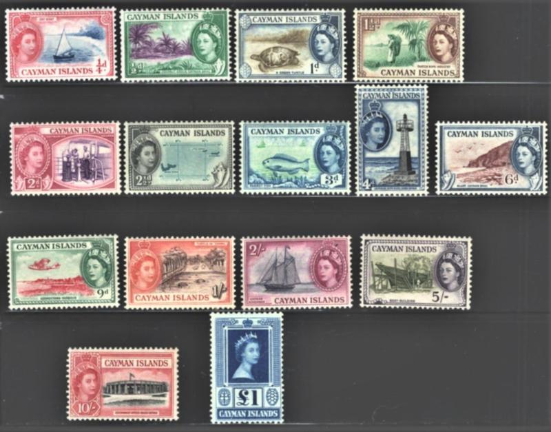 CAYMAN ISLANDS-135-149 MINT NH Complete set of the initial QE definitives to the one Pound denomination (Image)