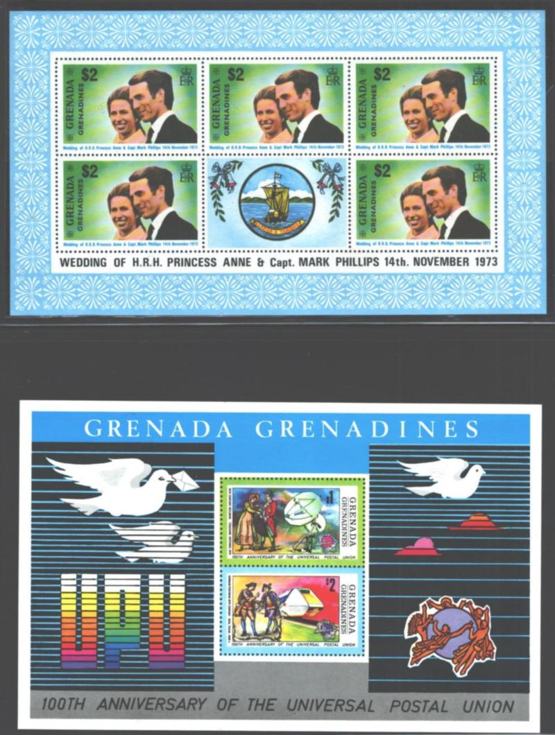 GRENADA-GRENADINES 1/589 SOUVENIR SHEETS VFNH Extensive selection of 61 different Souvenir Sheets and Panes from the years 1973 to 1984. See scan for list and examples (Image)
