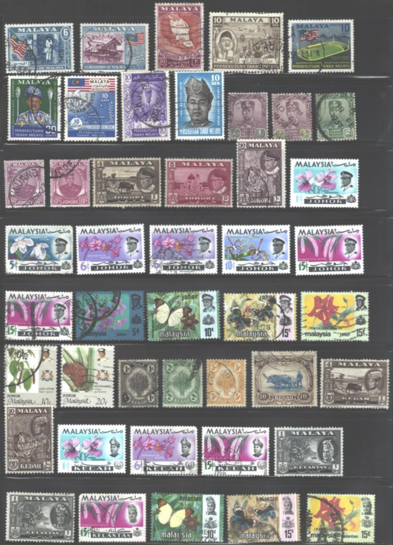 MALAYA, MALAYA STATES AND MALAYSIA, MALAYSIA STATES COLLECTION Collection of 155 stamps of both Malaya plus states and Malaysia plus states, mint and used, all different. Scott CV US$84.30 (Image)