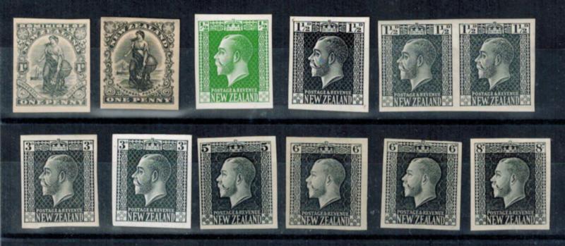 NEW ZEALAND PLATE PROOFS 11 proofs on stamp paper on card, Scott #132//157 (Image)