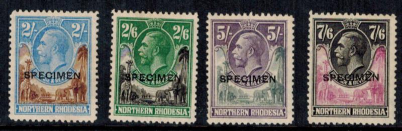 NORTHERN RHODESIA #11, 12, 14, 15 SPECIMEN OVER PRINTS VF, No gum, Stanley Gibbons catalogue value: 200 GB Pounds (Image)