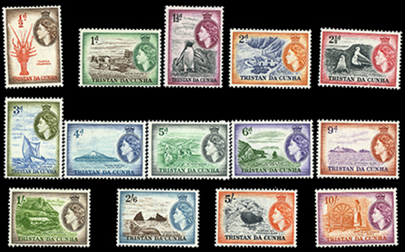 TRISTAN DA CUNHA: 14-27: 1954-58 Elizabeth II, 14 vals cpl, never hinged, f-vf. (SG 14/27 - £90) (Image)