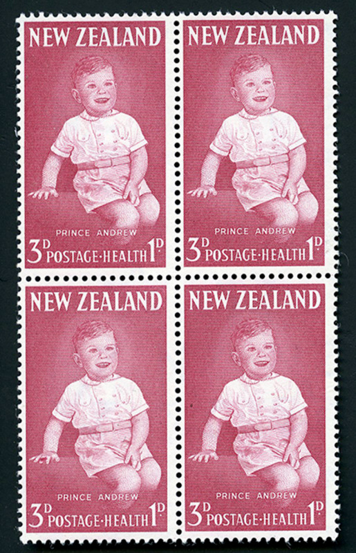 NEW ZEALAND: SEMI POSTALS: B66var: 1963 3d plus 1d carmine in block of four showing BLOODSTAINED FINGER, never hinged, very fine. (SG 816a - £90+) (Image)