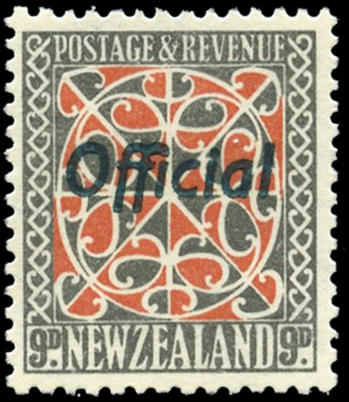 NEW ZEALAND: OFFICIALS: O69: 1938 9d red and grey-black, perf 13½x14, almost very fine. (SG O129 - £90) (Image)