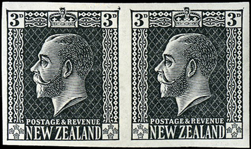 NEW ZEALAND: 164P: 3p, BLACK PROOF IMPERFORATE PAIR, on gummed watermarked paper (NZ and Star close together), nh and very fine. (Image)