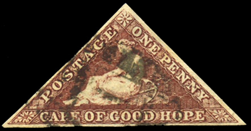 CAPE OF GOOD HOPE: 12b: 1d brownish red, large margins all around, rich colour, weak transfer at top, very. fine (Image)