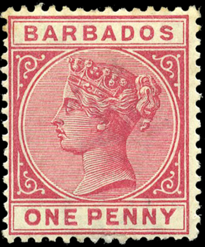 BARBADOS: 61: 1p rose red, mint, a few toned perfs (and back), og and almost very fine (Image)