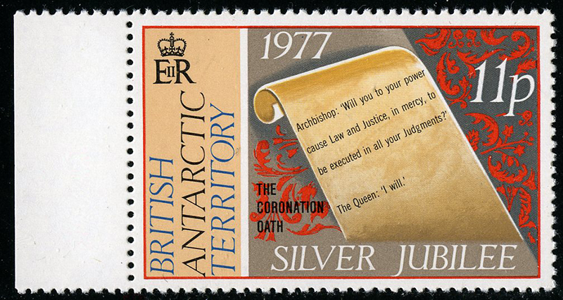 BRITISH ANTARCTIC TERRITORY: 69var: 11d 25th Anniversary, left margin copy with WATERMARK 'CROWN TO RIGHT', og, never hinged, vf. (Image)