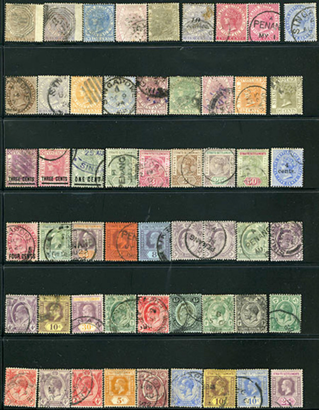 STRAITS SETTLEMENTS: 10/268: Over 100 used, 1867-1945, Victoria to George VI, with 12, 16, 18, 53, 55, 57, 89, 161, 239A, etc, generally f-vf. (Image)