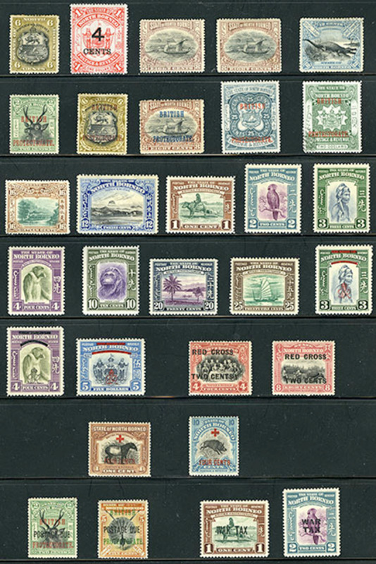 NORTH BORNEO: 63/237: 30 different, 1894 to 1918, includes Dues and War Tax, some original gum, attractive and f-vf. (Image)