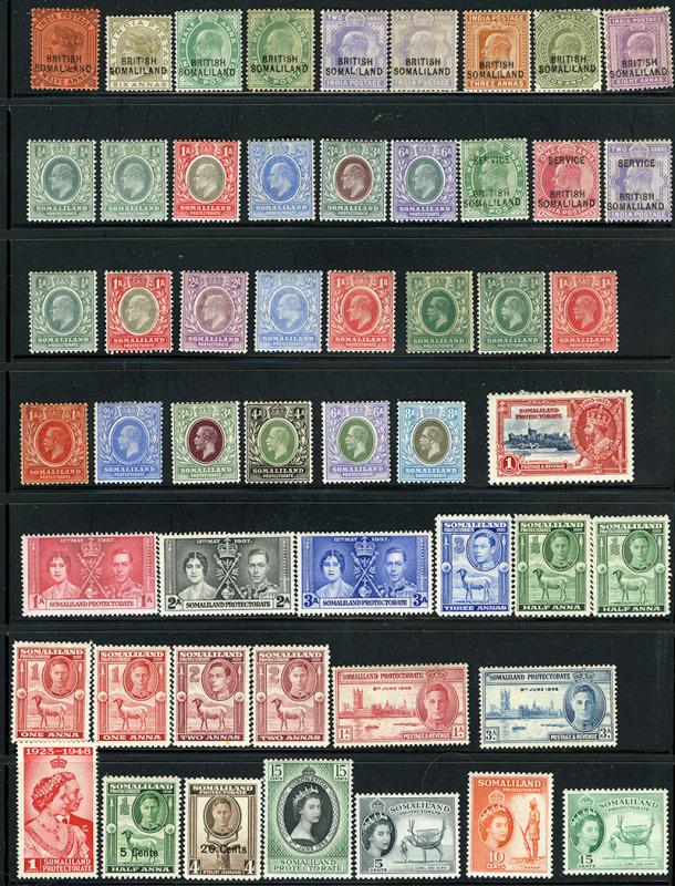 SOMALILAND PROTECTORATE: 15/106: 52 different mint, 1903 to 1953, including shades Officials, all appear fresh, attractive and f-vf (Image)