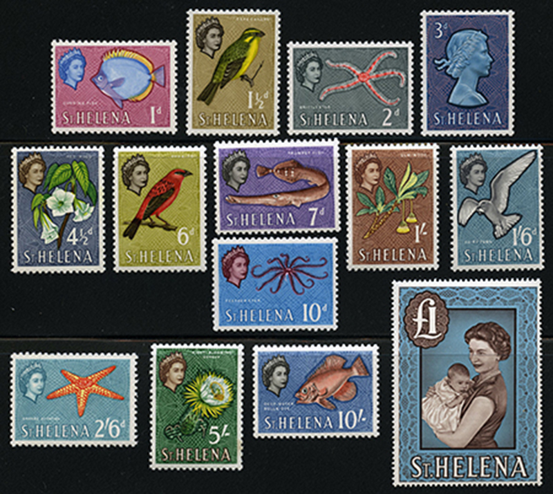SAINT HELENA: 159-172: 1961 Definitives, 14 vals complete, never hinged f-vf. (SG 176/89- £72) (Image)