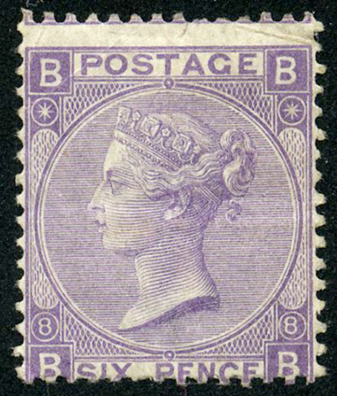 GREAT BRITAIN: 51: 6d Violet without hyphen, Plate 8, unused, creases appears fine. (SG 108 - £1400) (Image)