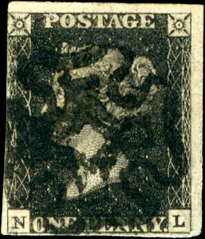 GREAT BRITAIN: 1: PLATE 6 (NL), just into to full margins, black MC, fine. (SG Spec AS 41 - £350) (Image)