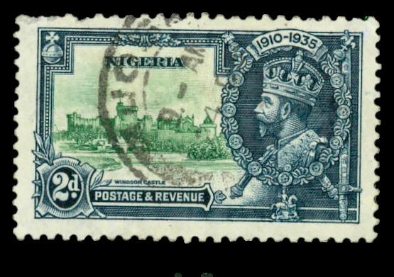 1935, 2d Silver Jubilee, kite and vertical log variety (Scott 35 var.); pulled perfs at top, Very Fine. SG 31k; £110 ($140). (Image)