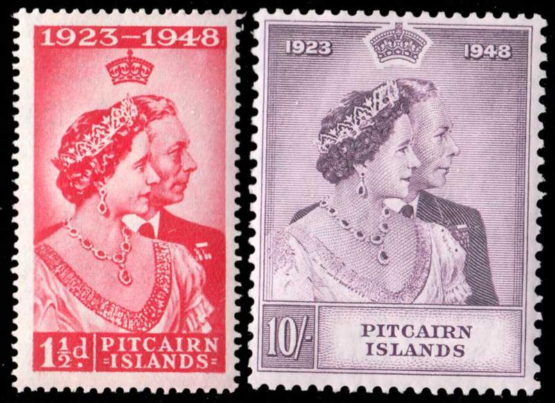 1949 Scott 11-12, 1 1/2d and 10/- Silver Wedding. Mint never hinged. (Inv PIT011S2) (Image)