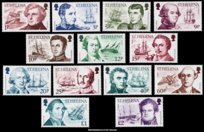 1986 Scott 462-474, 1p, 3p, 5p, 9p, 10p, 12p,15p, 20p, 25p, 40p, 60p, £1 and £2 Explorers and Ships. Mint never hinged. (Inv SHL0462S1) (Image)