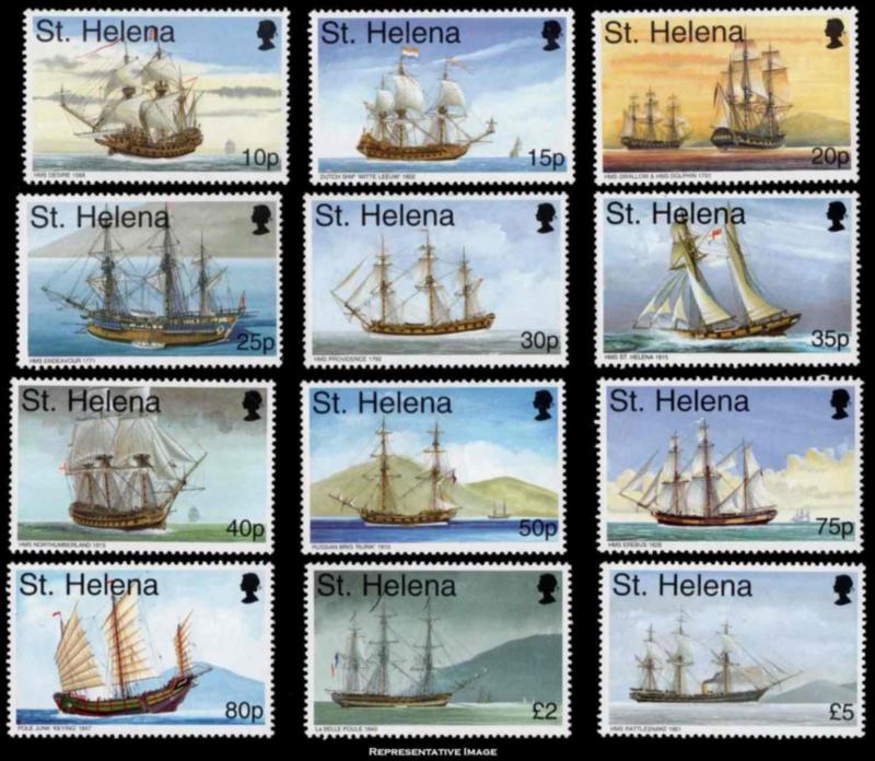 1998 Scott 716-727, 10p, 15p, 20p, 25p, 30p, 35p, 40p, 50p, 75p, 80p, £2 and £5 Early Ships. Mint never hinged. (Inv SHL0716S1) (Image)