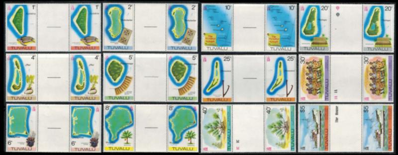 1977 Scott 58-70, 1c, 2c, 4c, 5c, 6c, 8c, 10c, 20c, 25c, 30c, 40c and $5 Types of 1976 Gutter Pairs. Mint never hinged. (Inv TUV0058S2) (Image)