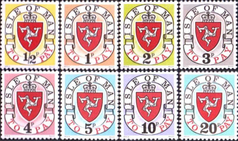 1973 Scott J1-J8, 1/2d, 1d, 2d, 3d, 4d, 5d, 10d, and 20d Inscriptions and Coat of Arms Postage Due. Mint never hinged. (Inv ISLJ001S1) (Image)