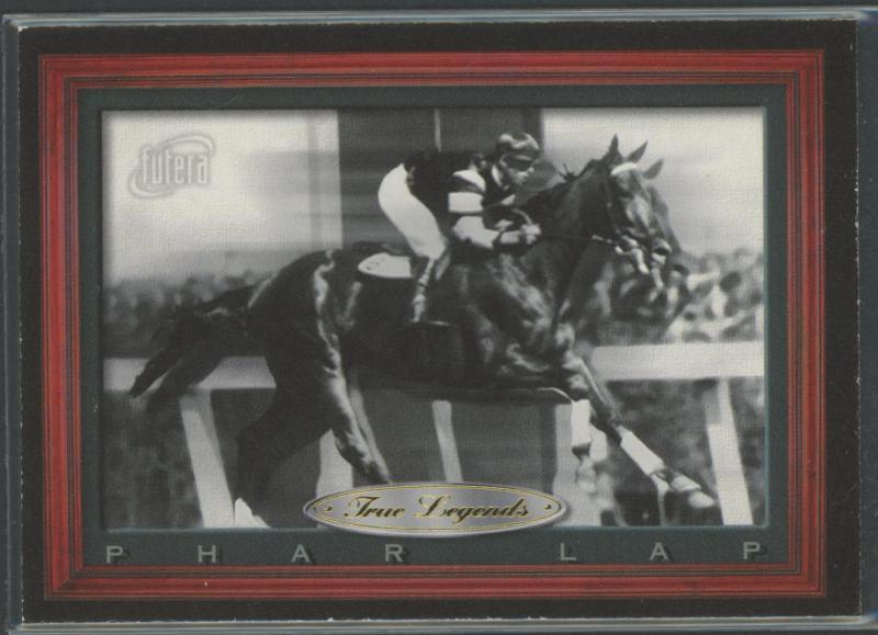 Trade Cards 1996 Futera 'Australasian Racetrack Legends' [45] & 'True Legends' [5] - Phar Lap, Tulloch, Manikato, Kingston Town & Dulcify, limited edition 008/750 in special album, Very Fine condition.