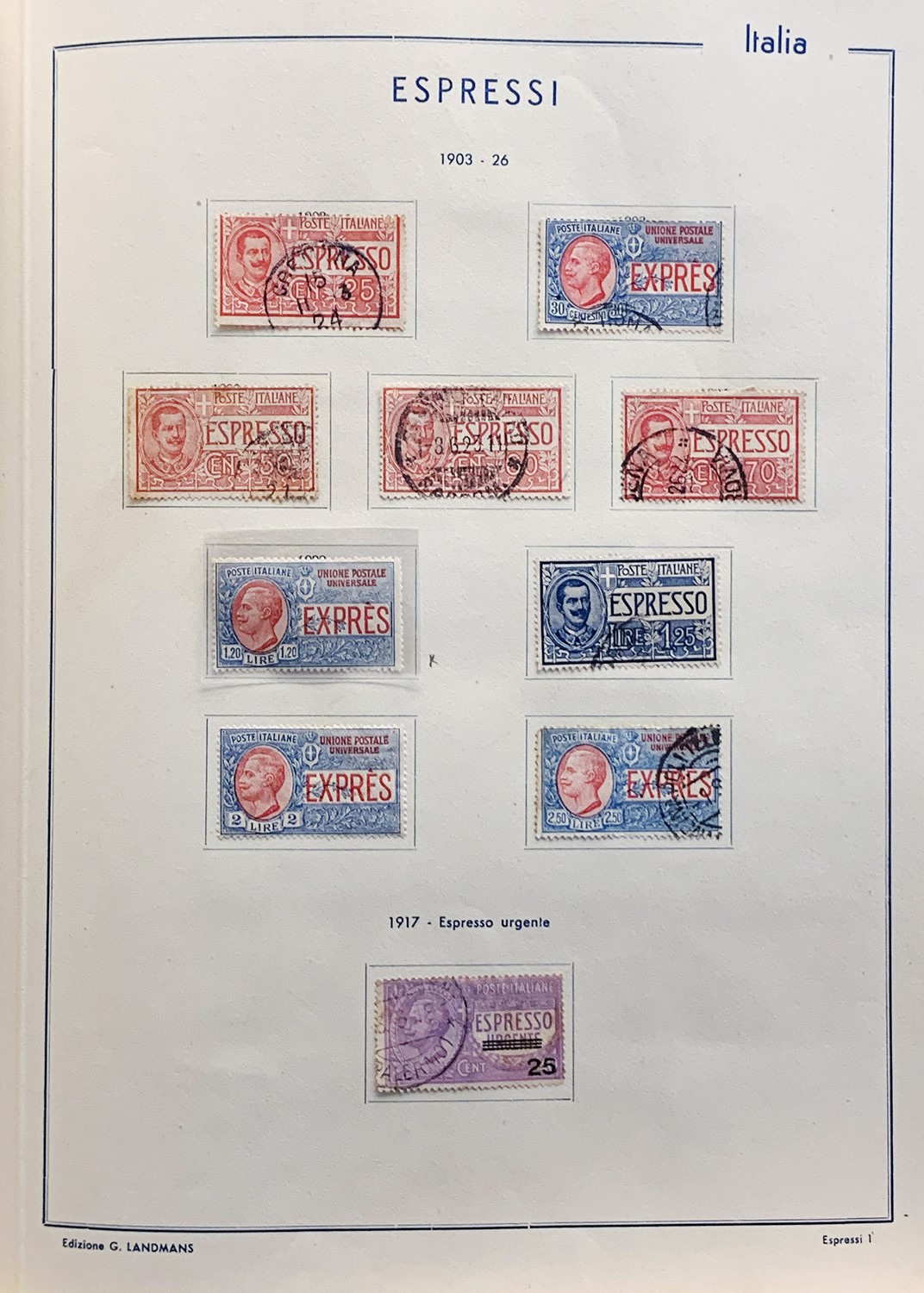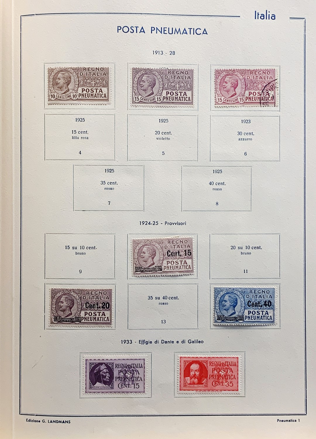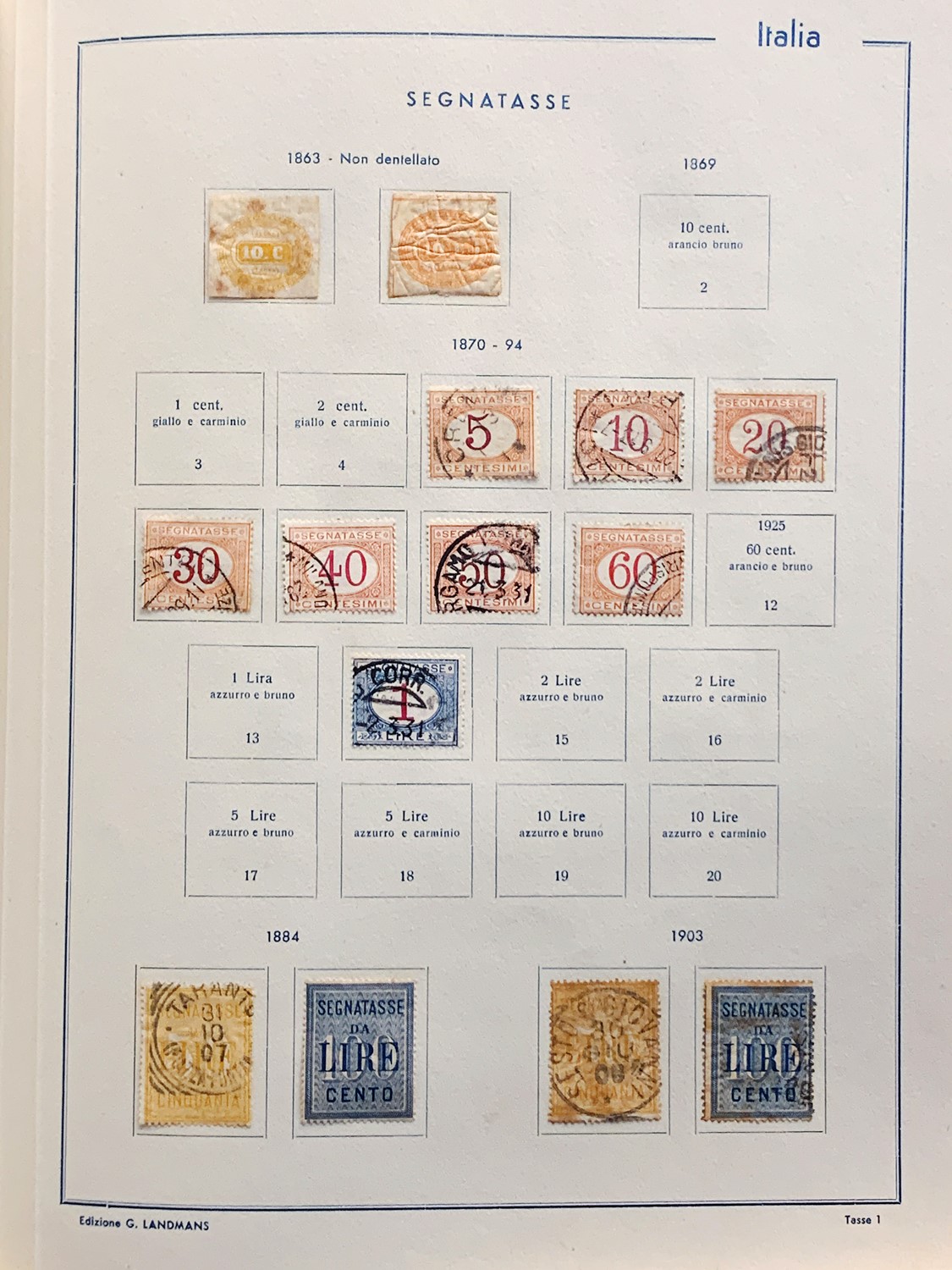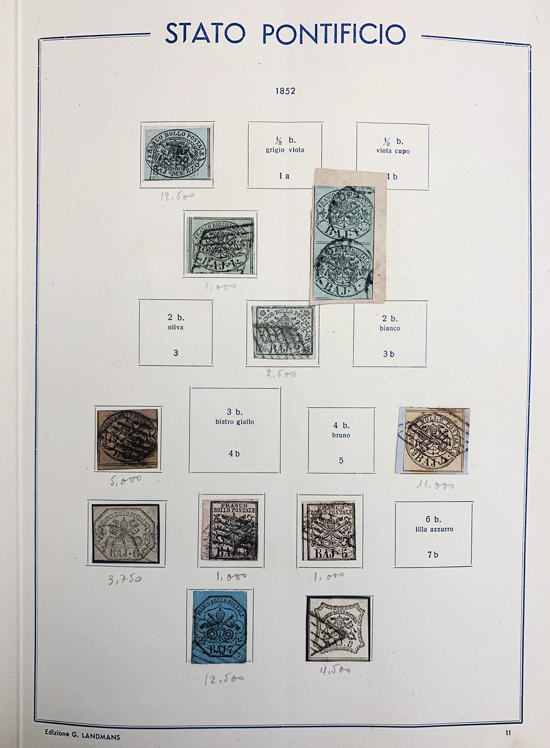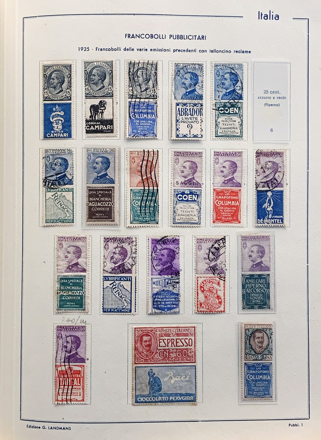 1850/1945 - ITALIA: bell'inizio di collezione di Ducati, Regno e Vaticano, composta principalmente da francobolli usati, con alcuni valori nuovi TL in taschina, montati su fogli d'album G.L.M Landmans. Discretamente rappresentati i francobolli pubblicitari, insieme molto interessante