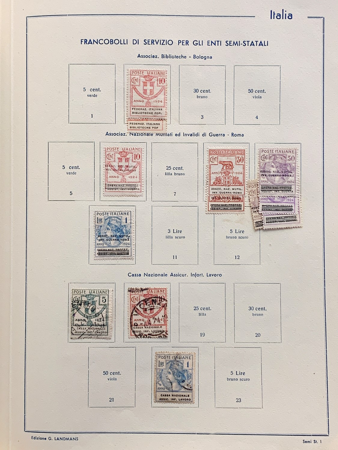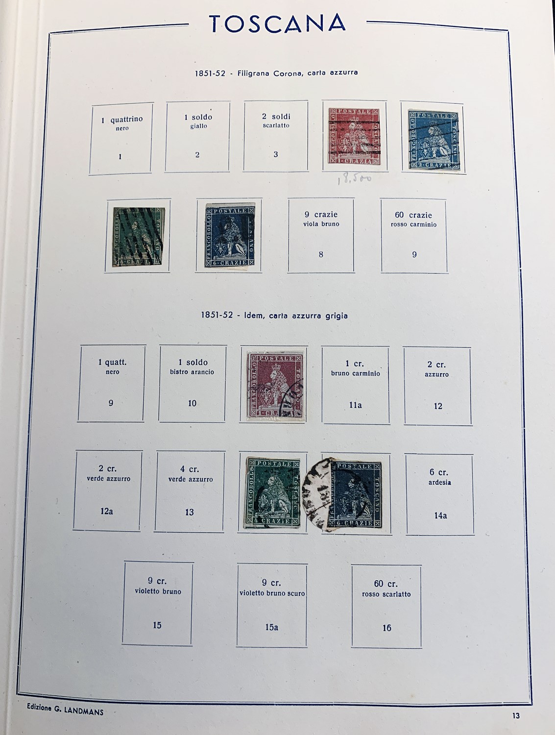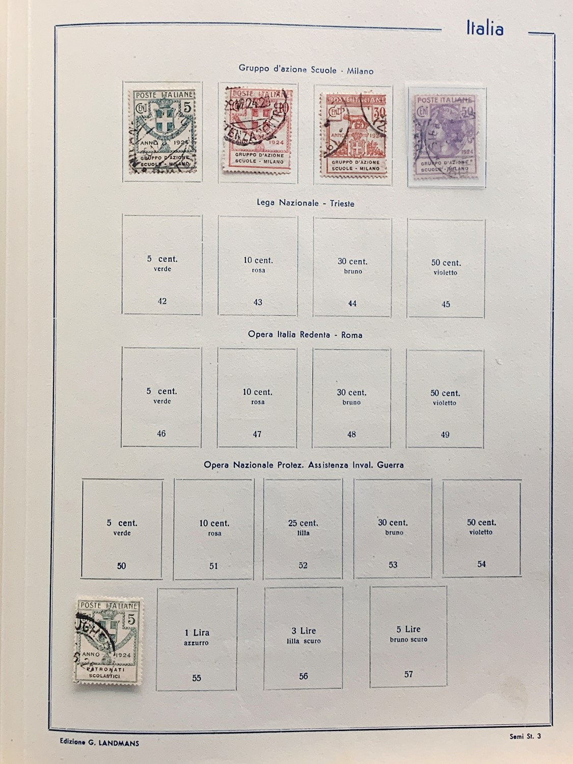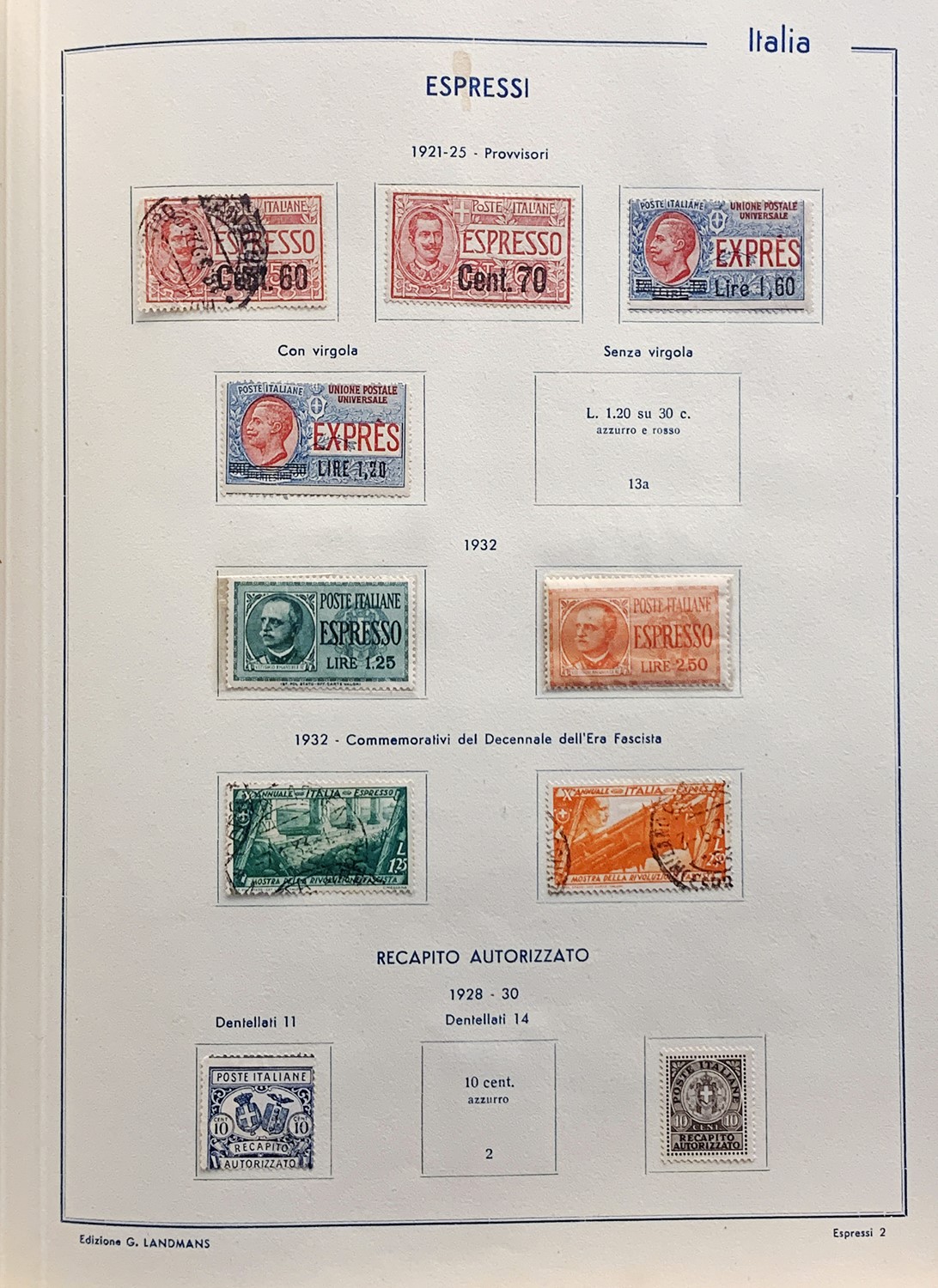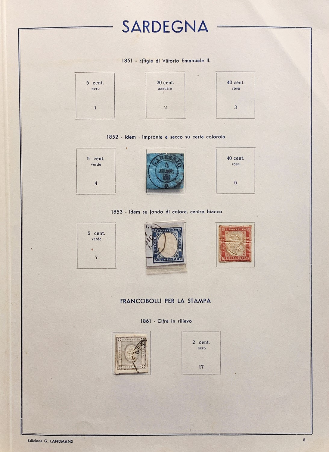 1850/1945 - ITALIA: bell'inizio di collezione di Ducati, Regno e Vaticano, composta principalmente da francobolli usati, con alcuni valori nuovi TL in taschina, montati su fogli d'album G.L.M Landmans. Discretamente rappresentati i francobolli pubblicitari, insieme molto interessante