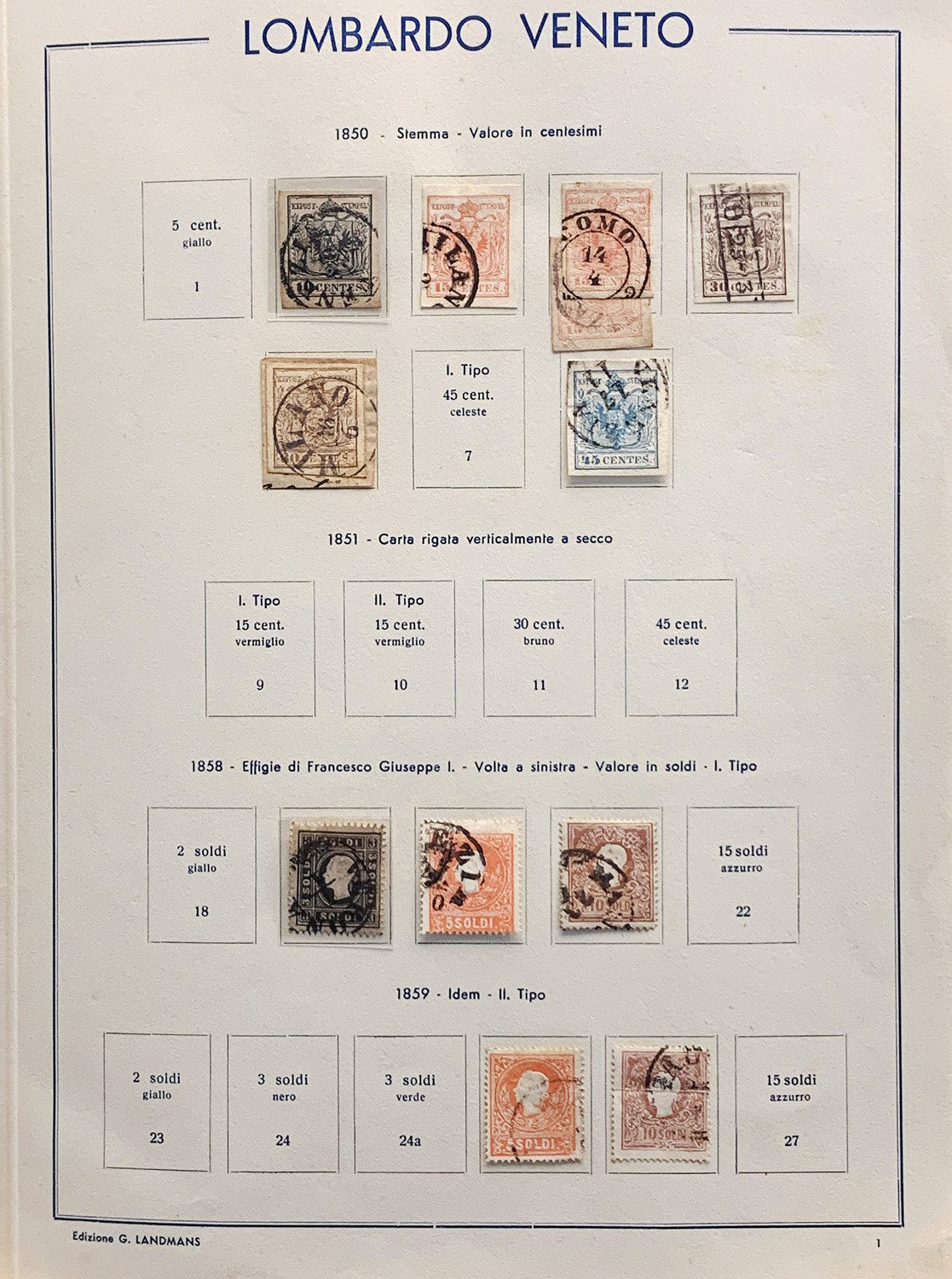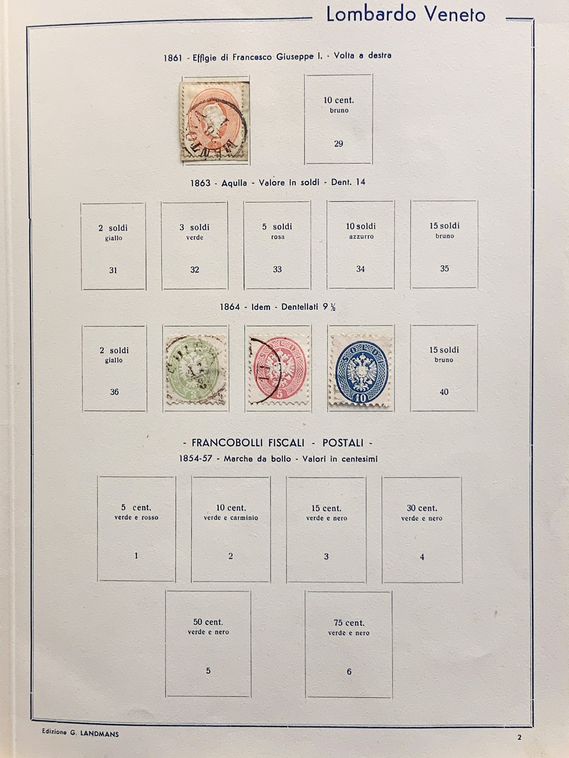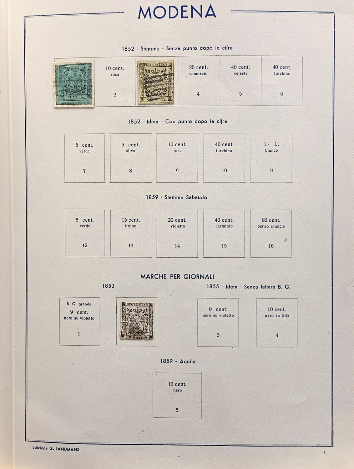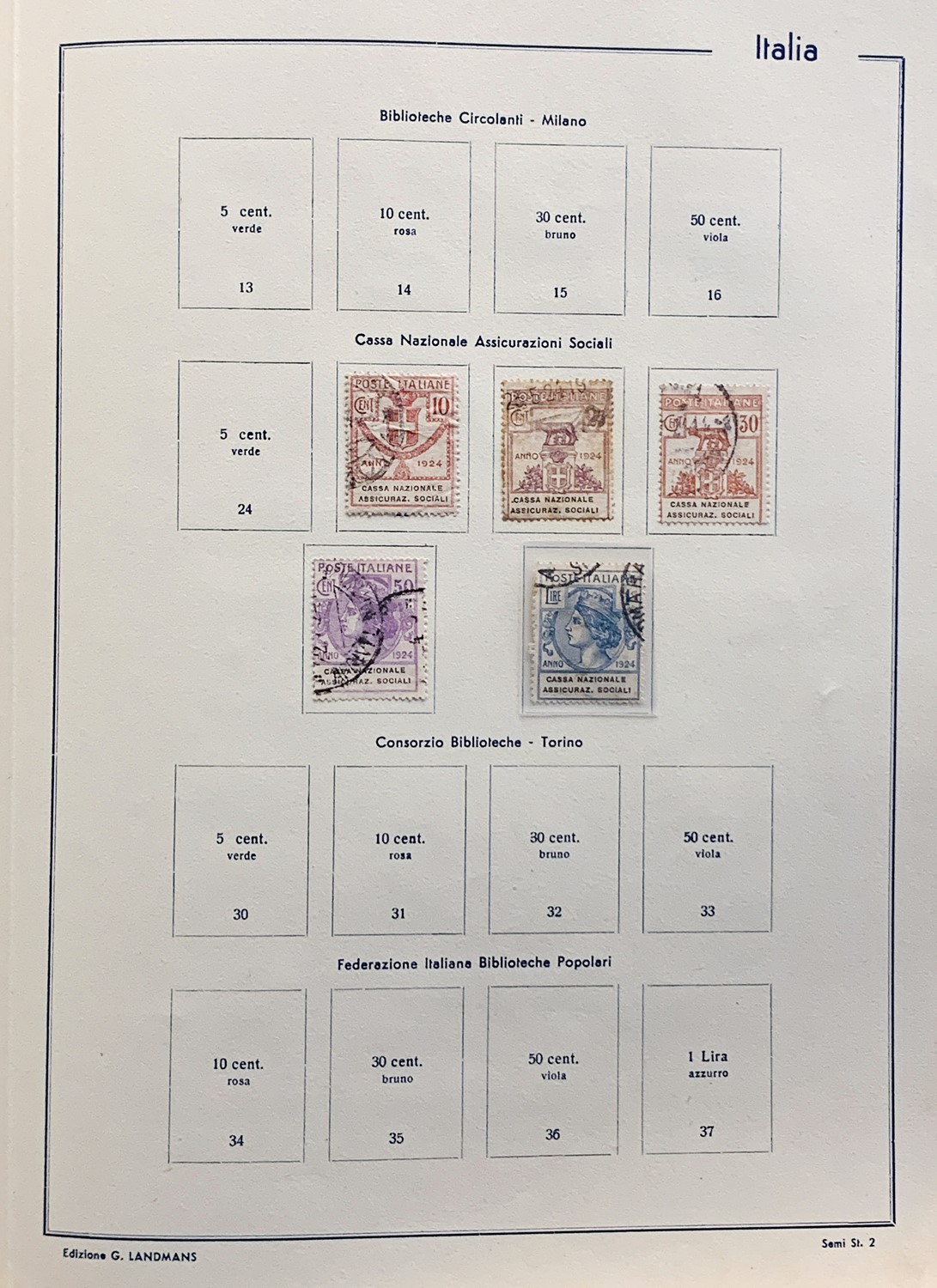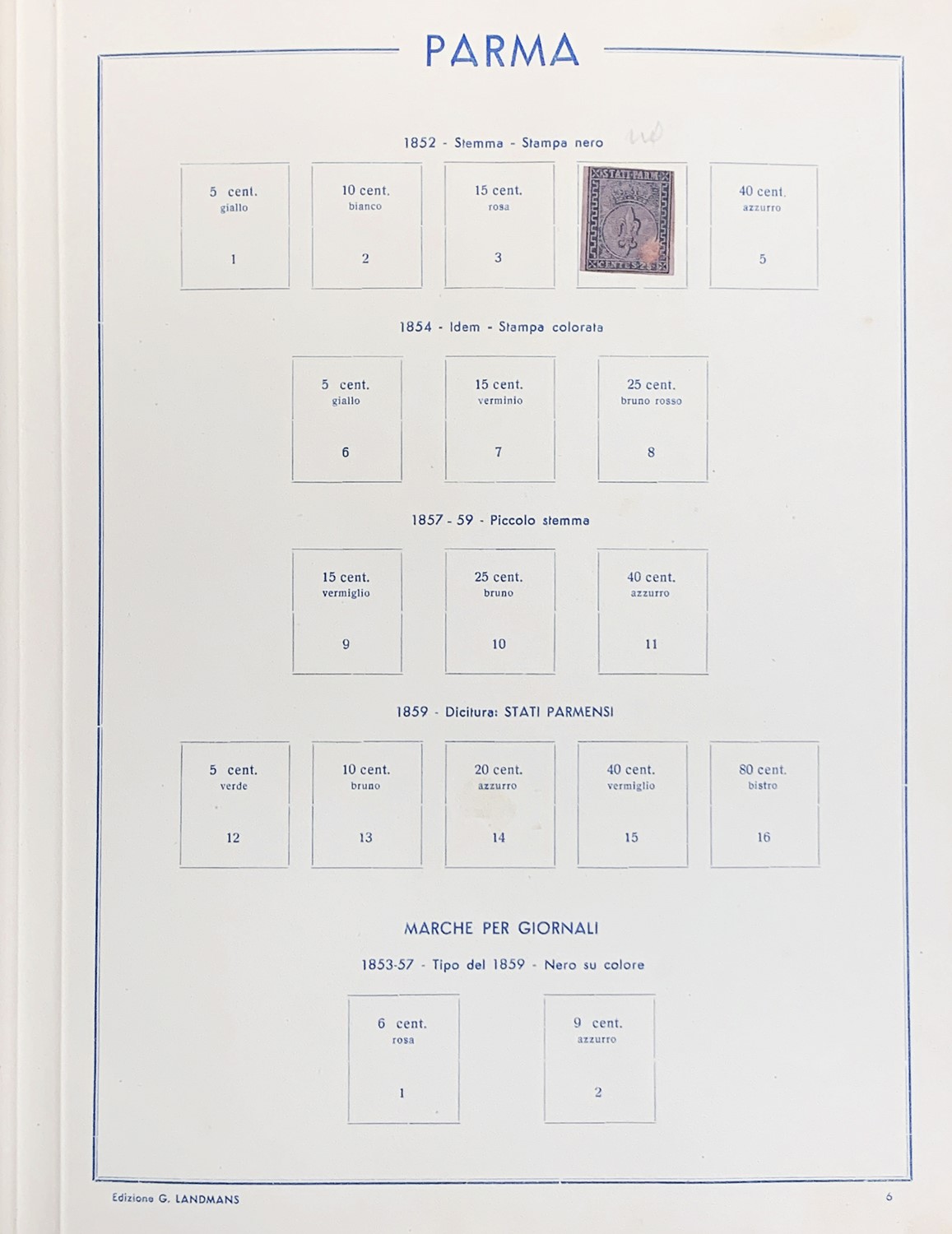 1850/1945 - ITALIA: bell'inizio di collezione di Ducati, Regno e Vaticano, composta principalmente da francobolli usati, con alcuni valori nuovi TL in taschina, montati su fogli d'album G.L.M Landmans. Discretamente rappresentati i francobolli pubblicitari, insieme molto interessante