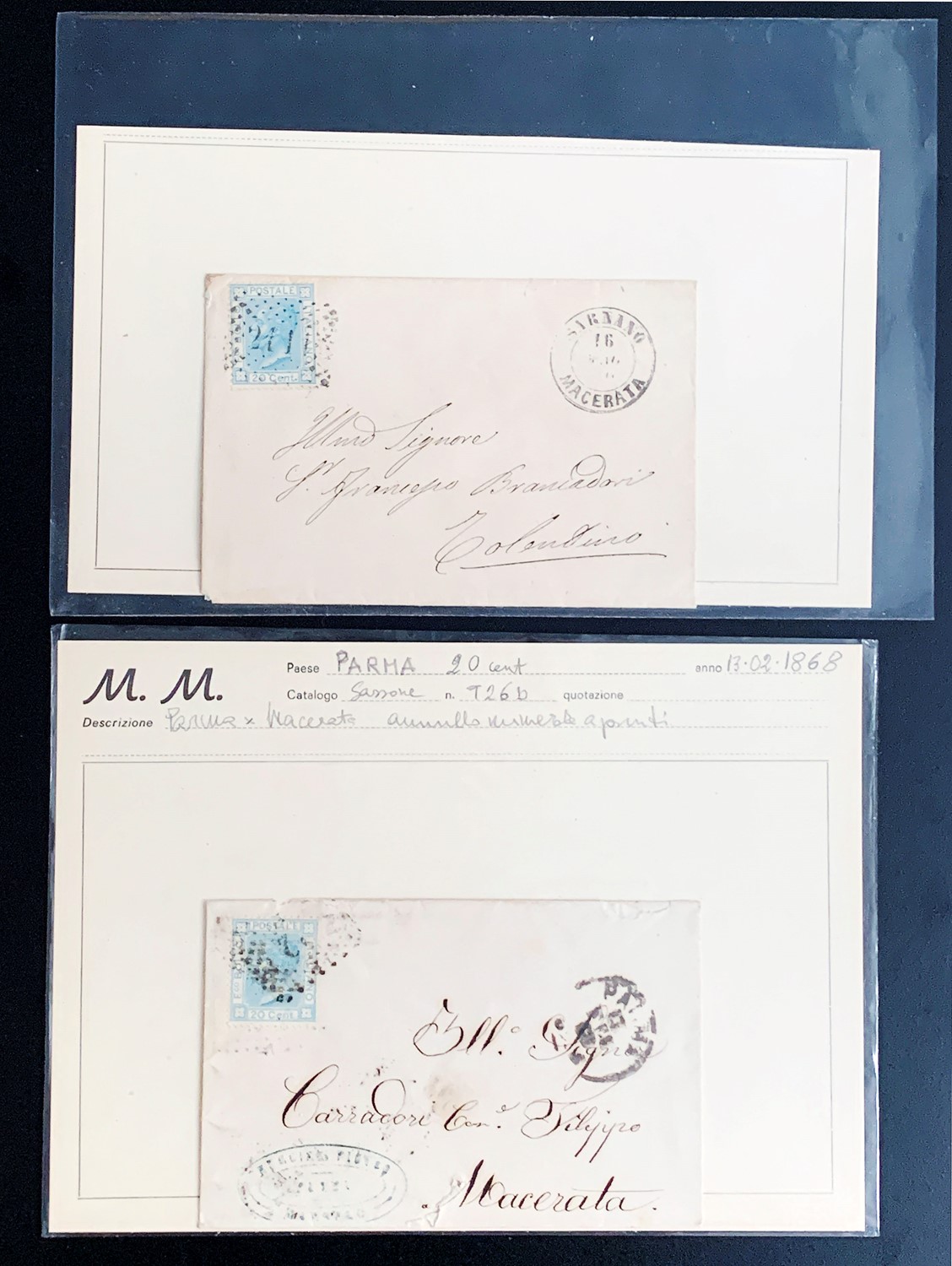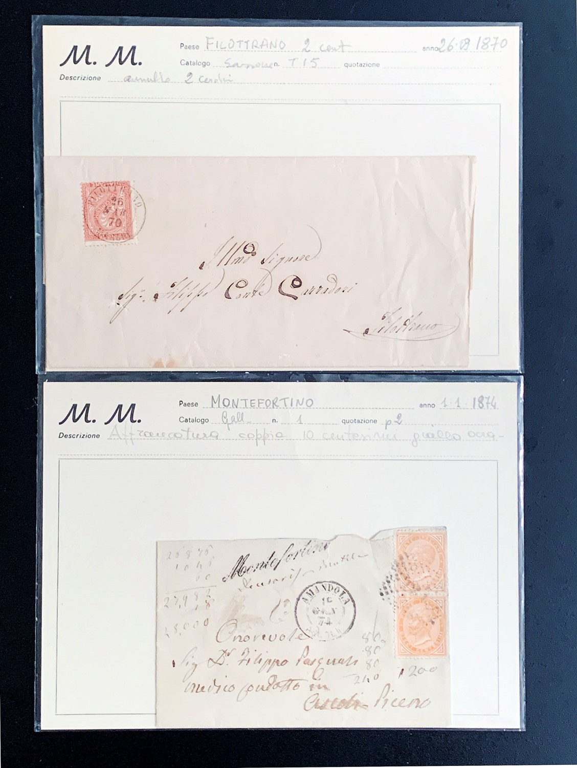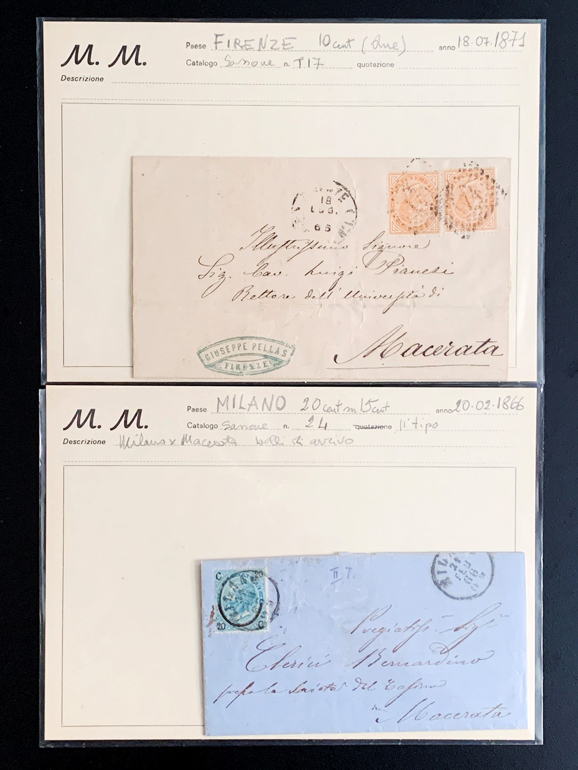 1862/1930 - ITALIA REGNO: insieme di oltre 100 oggetti di storia postale (lettere, cartoline, frontespizi, frammenti, etc.) prevalentemente con annullamenti delle Marche. Notate diverse affrancature interessanti e non comuni. Insieme generalmente di ottima qualità