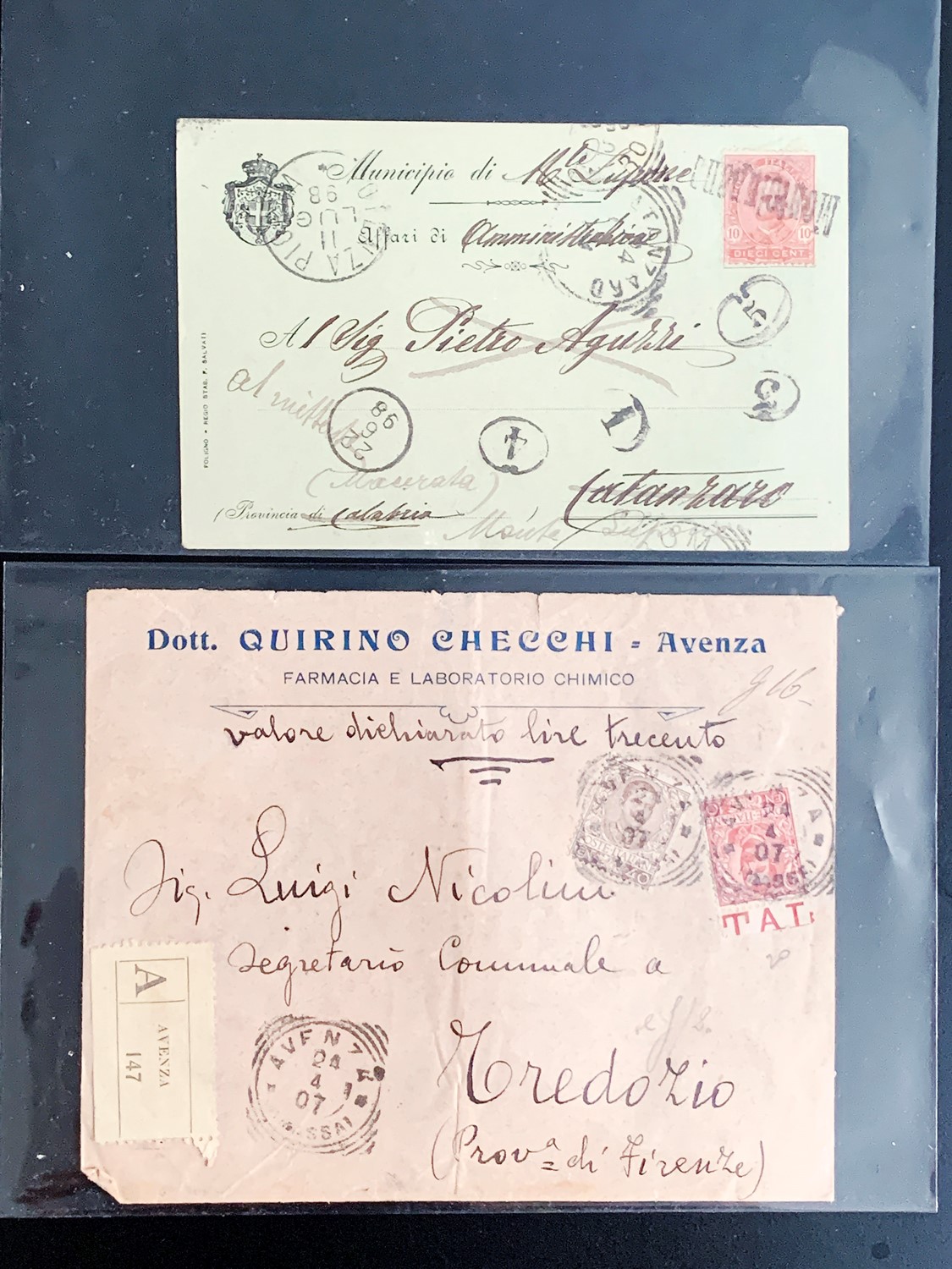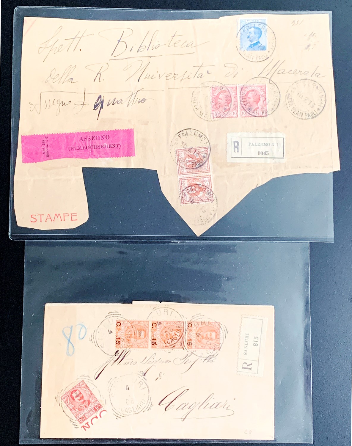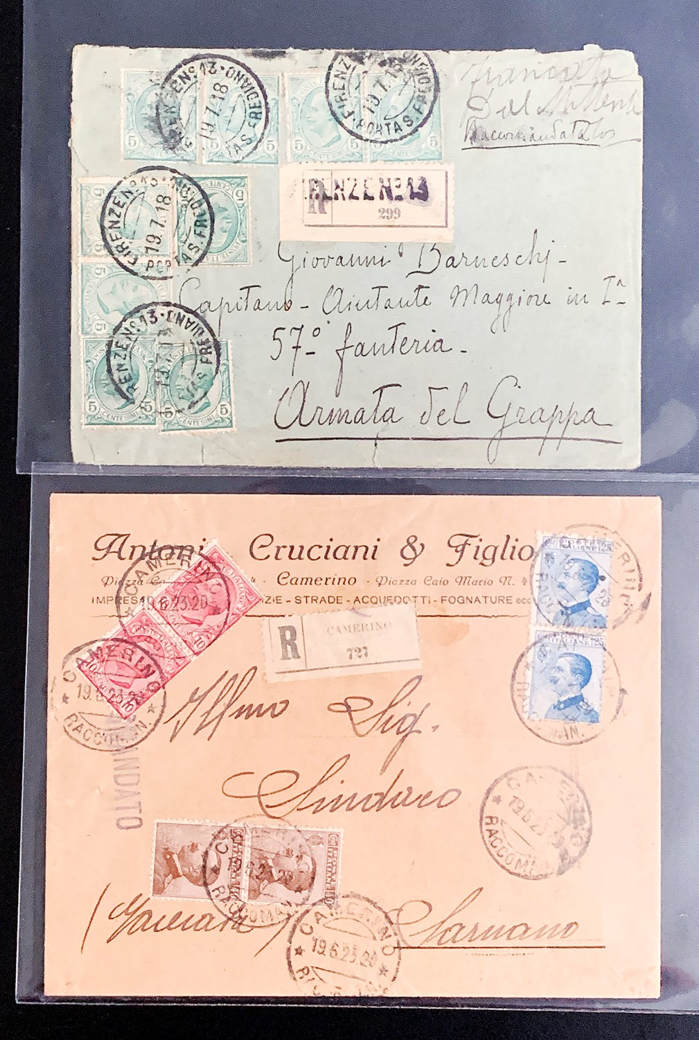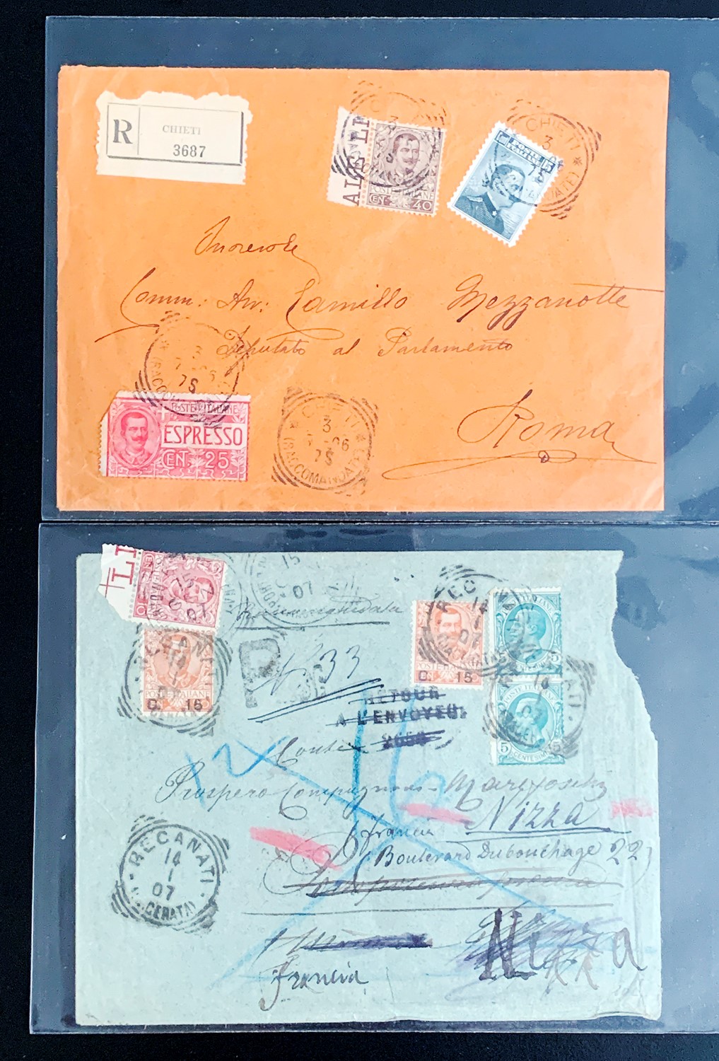 1862/1930 - ITALIA REGNO: insieme di oltre 100 oggetti di storia postale (lettere, cartoline, frontespizi, frammenti, etc.) prevalentemente con annullamenti delle Marche. Notate diverse affrancature interessanti e non comuni. Insieme generalmente di ottima qualità