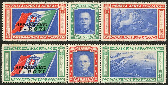 Yvert 48/49, 1933 Balbo's Transatlantic Flight, the set of 3 tryptics with "I-ROVI" overprint, mint, fine to VF quality! (Image)