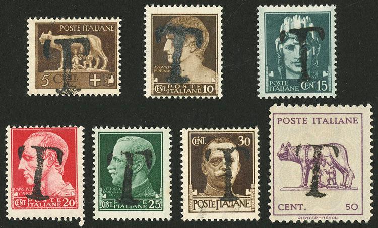 Lot of definitive stamps with handstamped "T" overprint applied in Bari in 1944, very fine quality! (Image)