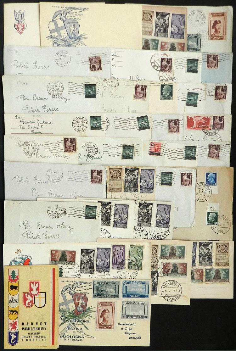 Lot of about 35 covers, cards etc., including stamps issued for the Polish Corps on covers and cards, and several covers sent from Rome to the "Polish forces", interesting! IMPORTANT: Please view ALL the photos of the lot, because all the material has been scanned (Image)