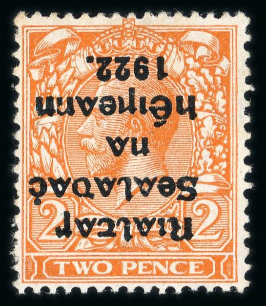 2d orange, die II, mint nh single showing inverted overprint, fresh, very fine and scarce, ex. Dublin (Hib.€375) (Image)
