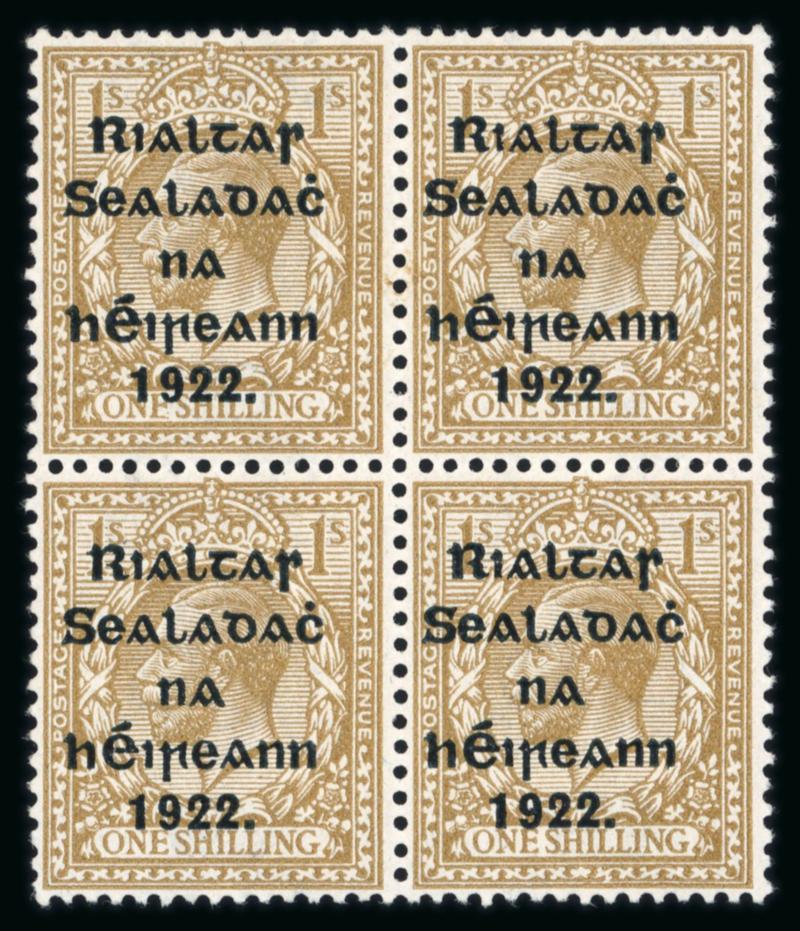 1s bistre-brown, mint nh block of four, showing ONF for ONE plate error in position 8/10, fresh, fine and scarce (Hib. €450+) (Image)